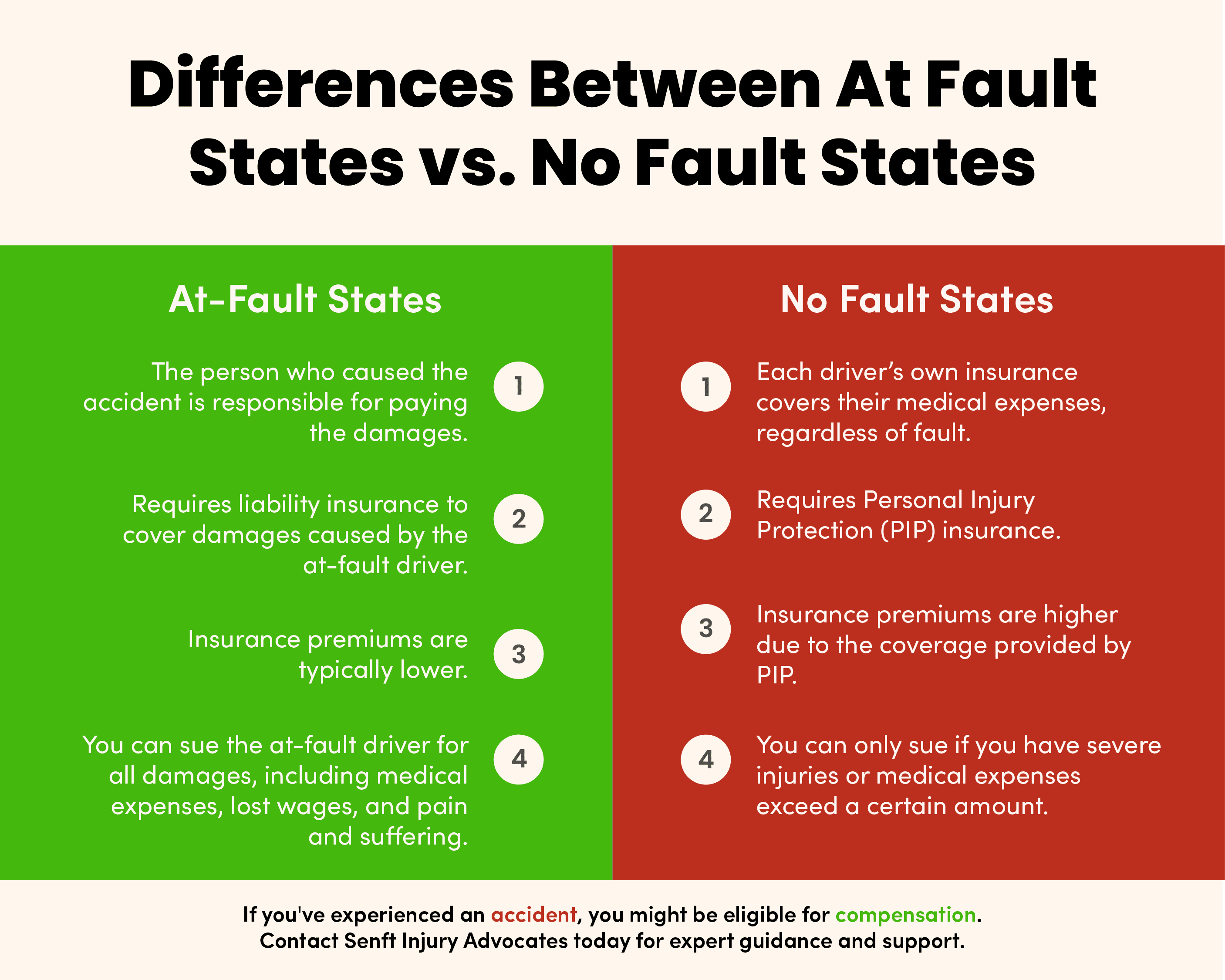 At Senft Injury Advocates, we understand that navigating the complexities of fault, negligence, and compensation after a car accident can be overwhelming. Whether you’re in a fault or no-fault state, the nuances of insurance policies and legal standards for negligence directly impact your rights and potential compensation. Senft Injury Advocates stands ready to support you in securing the compensation you deserve. With expertise spanning the gamut of auto accident claims, we’re committed to advocating for your rights and recovery every step of the way. Contact us today, and let us advocate for your rights, guide you through the legal process, and work to secure the compensation you deserve.